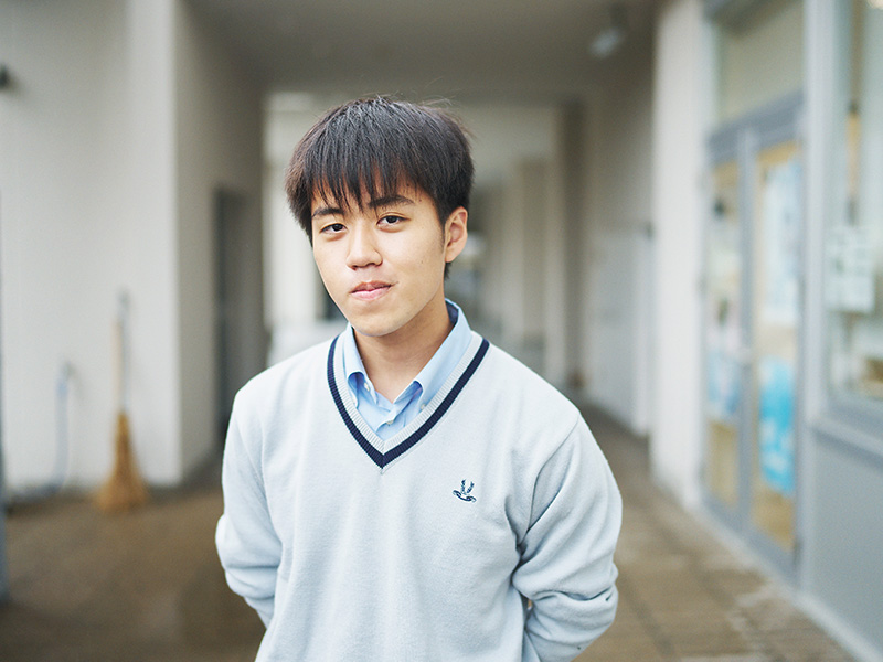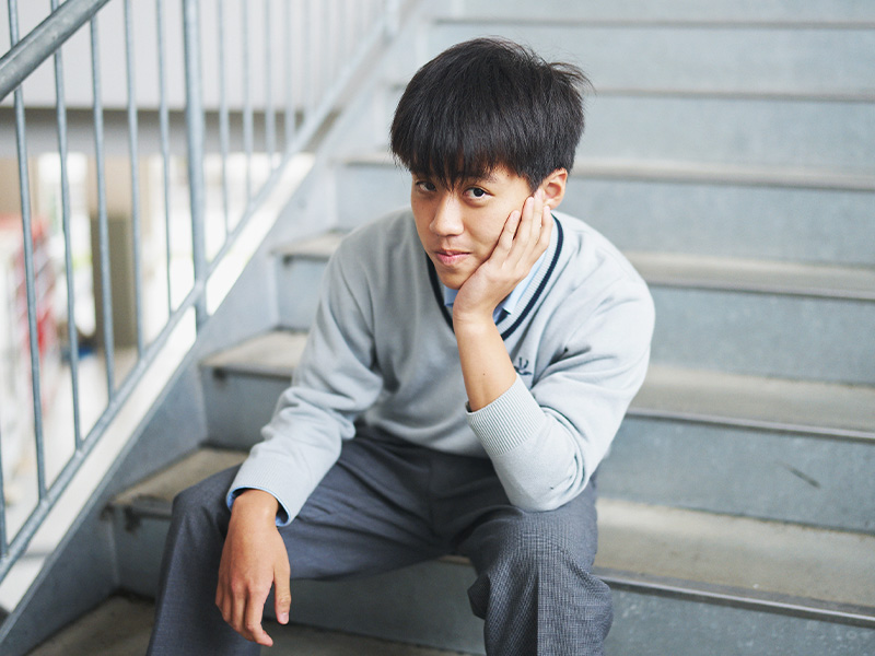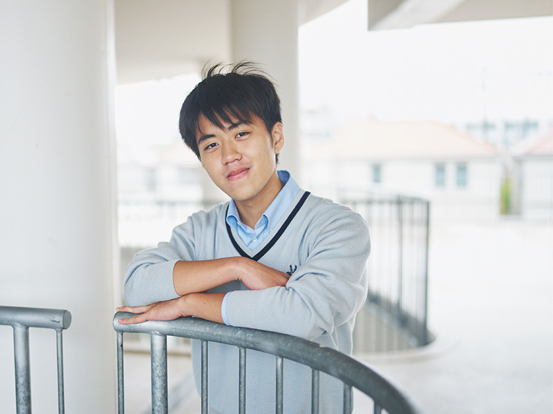 僕が追手門高校を選んだ理由はふたつあります。まずひとつ目は校舎がきれいだったから。そしてふたつ目は、探究活動やゲストを招いた講習会に力を入れていたり、留学支援に関わる手厚い制度があったりして、他の高校よりも自分の可能性を広げられるチャンスが多いと思ったからです。普段の学校生活において意識しているのは、友人だけでなく先生ともコミュニケーションをとるということ。やはりいろいろな人と関わりの中で、自分にはなかった価値観を見出せることが多くなると思います。そもそも中学までの僕は、あまり自分から行動するタイプではありませんでした。だからこそ今は、それぞれのパーソナルスペースは意識しながら、積極的に他者と対話をするように心がけています。