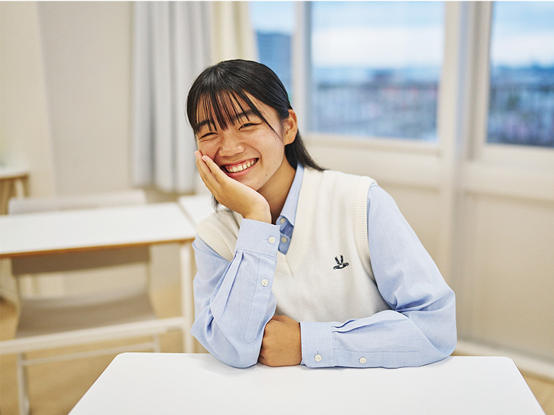私がいるスポーツコースで、唯一ほかのコースの生徒と関わることができるのが、探究の授業です。私は性格的に人見知りということもあって、はじめは自分の意見を伝えるのが苦手でした。しかし回数を重ねる中で、たくさんの感性や考え方をぶつけ合わせることで、思いがけないアイデアがうまれることに気づきます。それに自分以外の人の気持ちを知ることで、ものごとをいろいろな視点から捉えられるようにもなりました。またすべての授業に共通する心がけもあります。それは学んだことをその日のうちにきちんと理解して、頭の中に入れること。そもそも私は部活動を理由に、成績を落としたくないので、勉強も妥協しません。放課後には、授業で出された課題や、予習・復習などをやるために『O-SLEF』という学校が提供してくれている学習支援システムも活用してきました。正直、大変に感じることも多々ありますが、今努力することで、必ず自分の力になると信じて頑張っています。