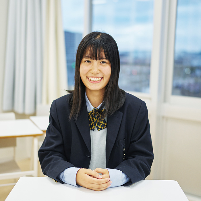 「校舎がとてもきれいで、かっこいい」。それが私が追手門学院のオープンスクールに参加した時の第一印象です。入学してから感じたのは、自分のペースで伸び伸びと学べる環境が整っているだけでなく、先生も生徒も温かい人が多いということでした。私が通う特選SSコースには、難関大学を目指す人がたくさん在籍しています。勉強のレベルが高いクラスというのは、無意識のうちにクラスメイト同士をライバル視してしまい、少しギスギスした雰囲気になるものだと思っていました。しかし実際は「一緒に頑張ろう」という穏やかな空気の中で、個性豊かな友人に囲まれながら、互いに支え合うことができていると思います。