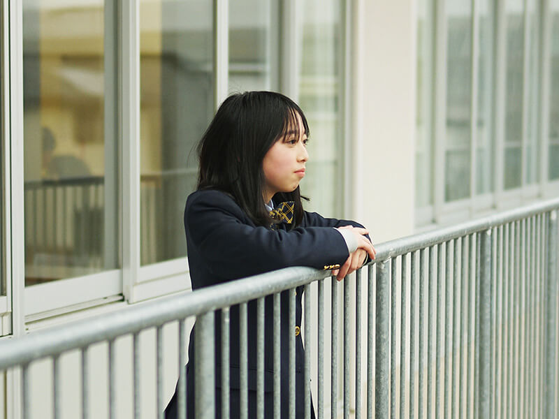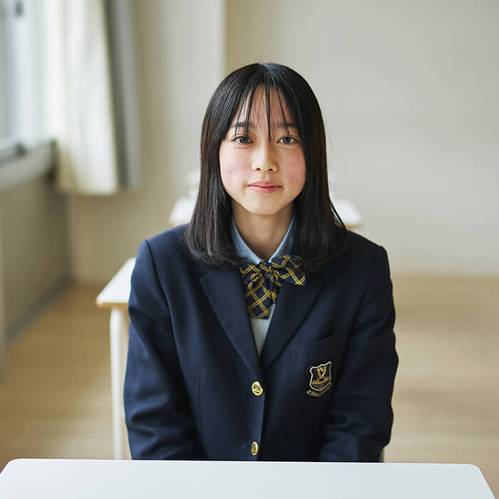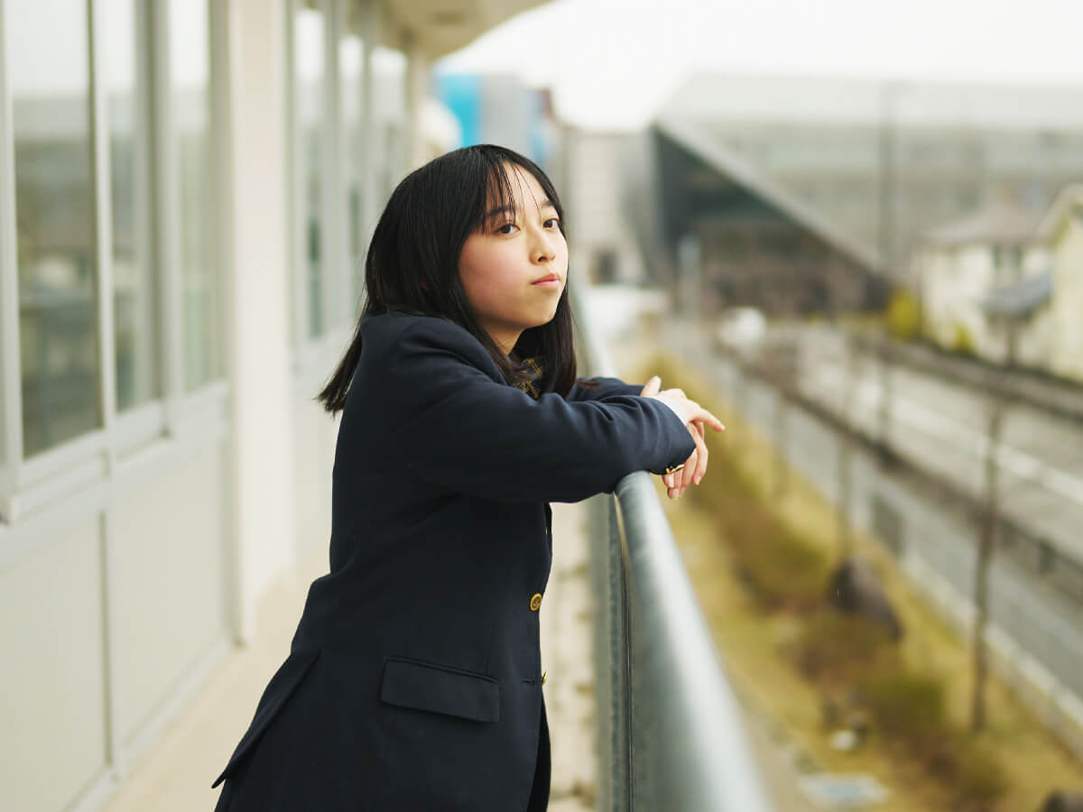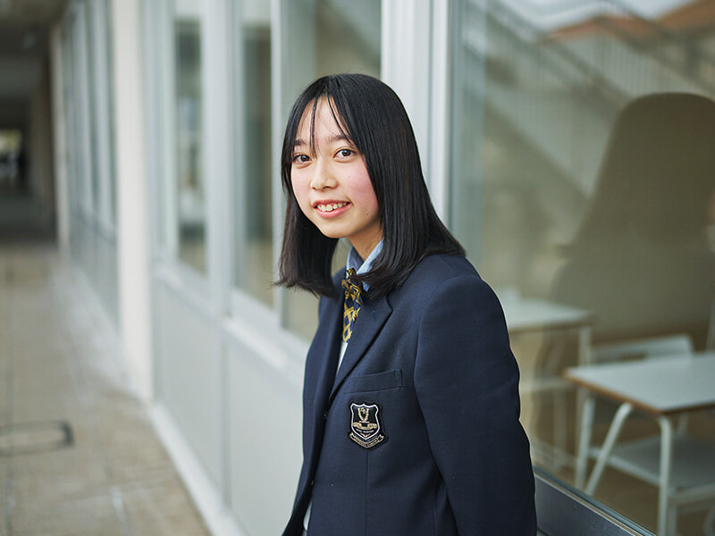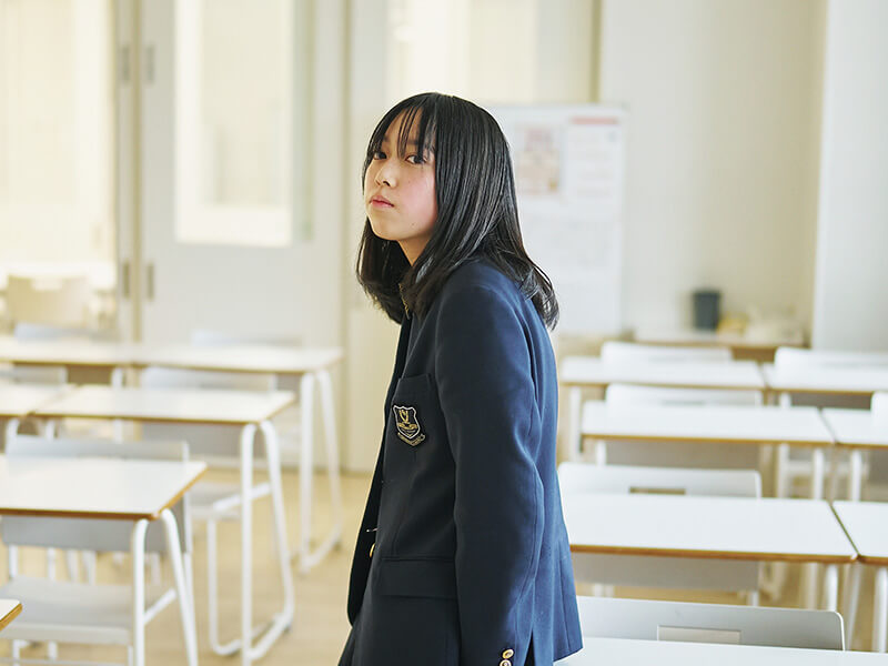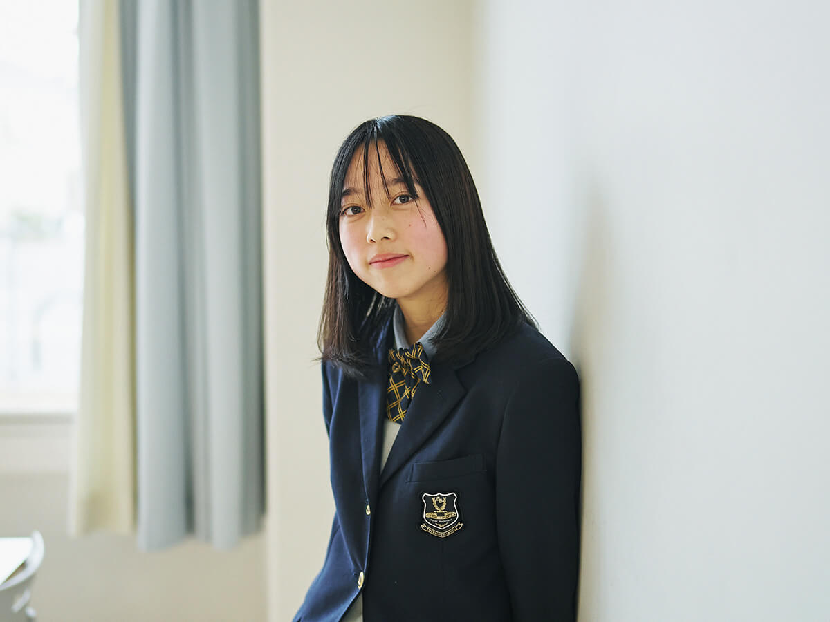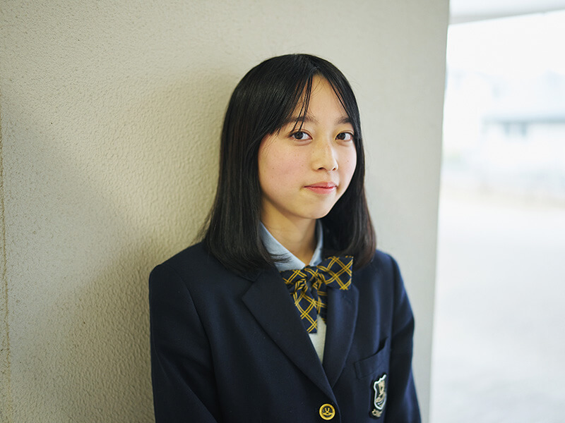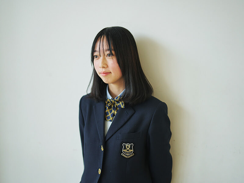 私は追手門中学校からの内部進学でこの高校に来ました。中学受験をすると決めたのは、小学校で仲が良かった友達と離れ、知らない人ばかりの環境に身を置くことで、自分がどんな風に生まれ変われるのかが知りたかったから。その中で分かったのは、常にまわりの状況をよく観察したり、後になってから「ちょっと話しすぎかな」と自分の発言を省みたり、さらにキャラクターをつくりながら他人と接したりしてしまうのが、変わることのない私の性格ではないかということ。とはいえ、本当の自分というのはまだ掴み切れていないというのが正直なところです。