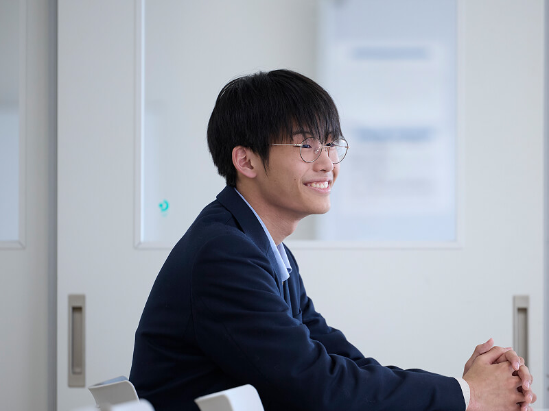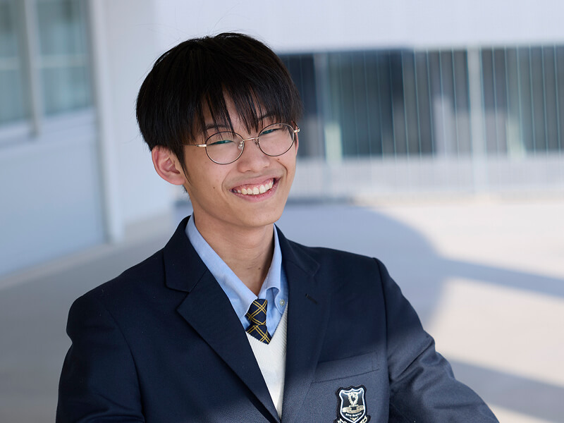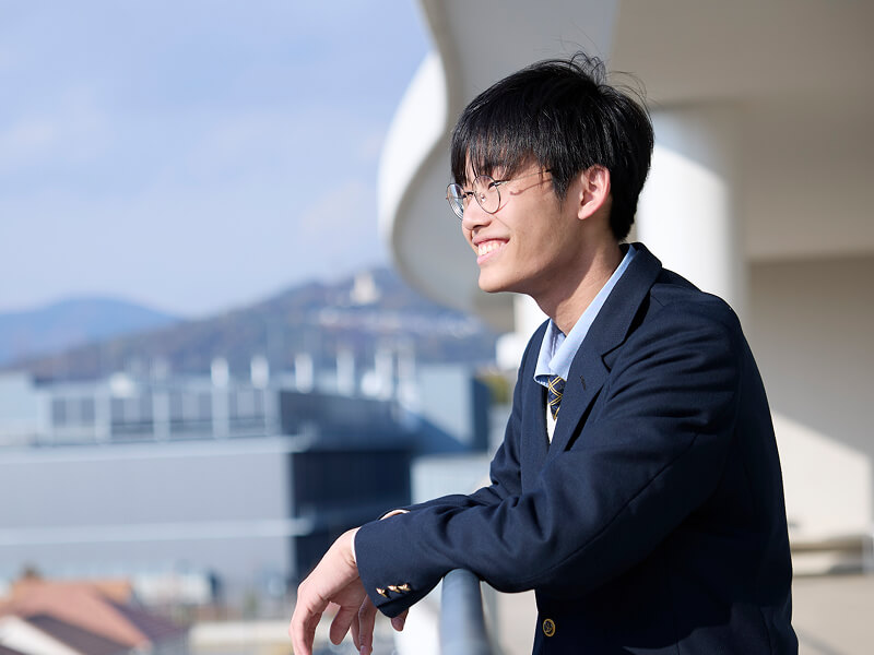 僕は中学3年生の時に、追手門学院のオープンスクールに来て、創造コースの体験授業を受けました。その時に先生ではなく、たった1〜2歳上の先輩が授業を担当していたことに驚きとかっこよさを覚えます。そして「ここに来れば自分もこれくらい成長できるかも」と感じて入学を決意しました。創造コースでは、勉強そのものよりも、勉強を通して気づきを得て、それを自分の生活へと落とし込むような授業が多く、例えば数学の公式などの知識をどんどん覚えていって受験の準備につなげるといった旧来型のスタイルではありません。