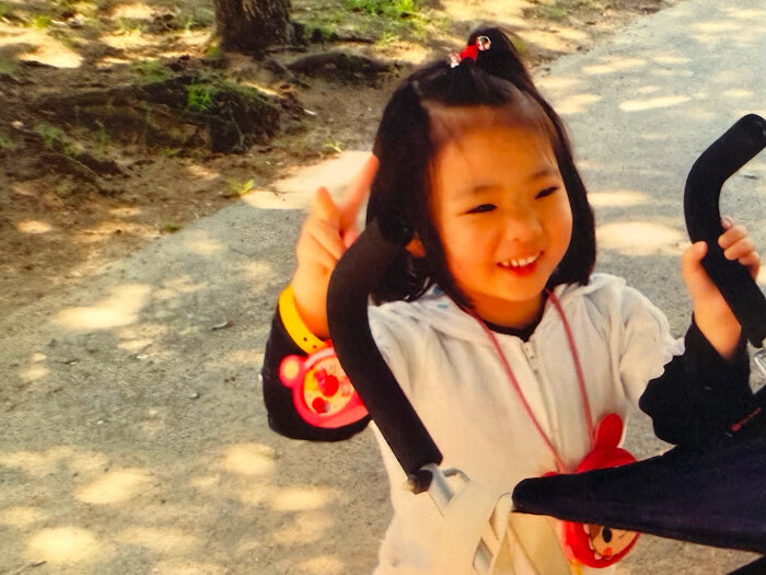 公園で遊ぶことが大好きで、いつも外で遊んでいました。幼いときから元気でずっと走りまわったり、踊ったりしているような子でした。好奇心旺盛で社交的で明るい子でした。