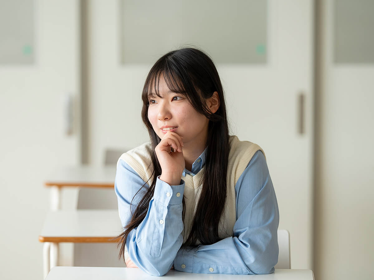 私の将来の夢は、看護師になること。小さい頃、病院に通っていた時期があって、その時の看護師さんがとても優しくしてくれたことを覚えています。その人に憧れたのが、この職業を目指した一番の理由です。また知人や親戚など、身近に看護師が多い環境で育ち、仕事の話を聞いたり、実際に働いているところを見たりする中で、小学生の時からブレることなく看護師になるという夢を持ち続けてきました。大変な仕事であることは理解していますが、大変なことをできる人はカッコいいと感じます。私は自立していて、強い女性にずっと憧れてきたので、自分もそんなカッコいい大人になりたいですね。