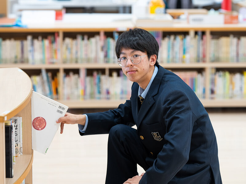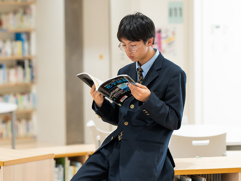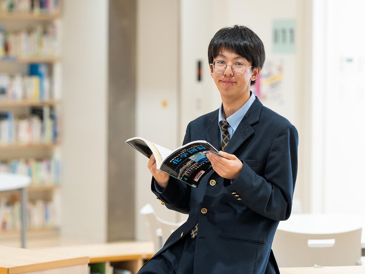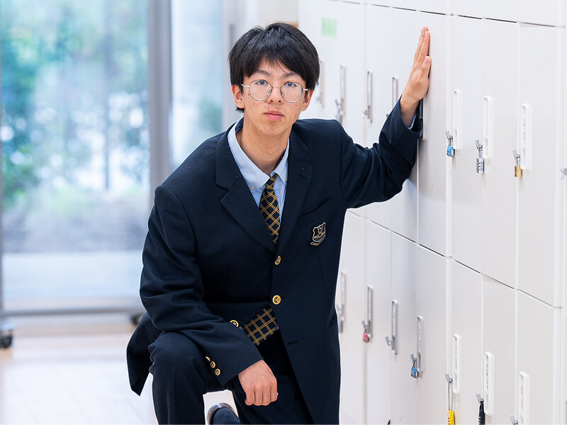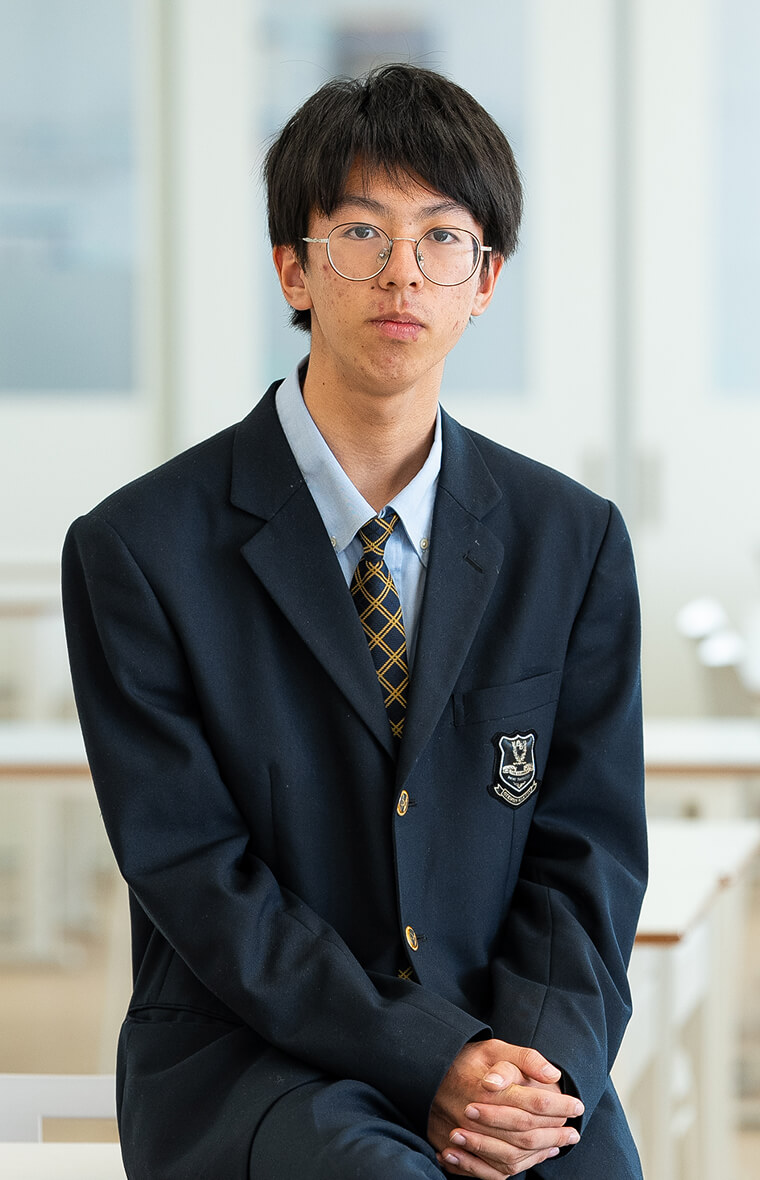 僕が追手門への進学を考えたのは、オープンスクールに参加して、自分に合っているように感じたのがきっかけ。まずは学内が騒がしすぎないこと、そしてだからといって勉強一色という感じでもなく、ある程度自由にできそうなところが、僕がなんとなく求めていたイメージと合っているような気がしました。入学時はⅠ類でしたが、2年生からは特進SSコースに変わって、今は生物や科学、物理などの教科に特に意欲的に取り組んでいます。また1年生の時から所属しているのが創作部です。絵でも粘土でも、とにかく「創作」できるものであれば何をやってもいい部活で、僕はもともとは水彩画に力を入れていて、最近は手芸やパッチワークにはまっています。