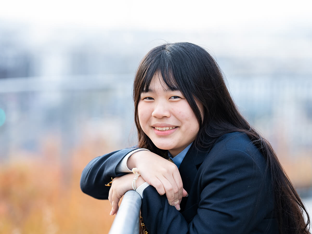 私はこれまで学校での授業以外に、受験生に向けた創造コースの体験会や、学校外の課外授業などにも積極的に参加してきました。今年の夏休みには「地方創生」に関わるプロジェクトに参加し、冬休みにも「農業」に関わるプロジェクトに参加する予定です。もともと「人の役に立ちたい」「さまざまな人と関わりたい」といった思いを持っていたのですが、中学校では人と違うことをする人に対して周りが少し攻撃的な接し方をする場面も見られ、なかなか自分自身の意見を発信することができないままでした。しかし今はそんな雰囲気はまったくありません。創造コースでは、互いを認め合い、肯定し合う環境が整っているので、「間違っていてもいいから、とりあえず自分が感じるままを伝えてみよう」と思えることができるようになりました。その積み重ねの中で、学校内だけでなく、もっとたくさんの人と関わりたいと思うようになったのが、学校外の活動に力を入れ始めたきっかけです。また外部の人たちと関わりながらも、学校には自分にとって安心できる居場所があると感じられるのも、とても心強いです。