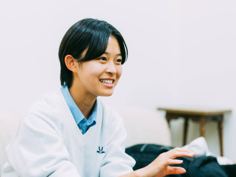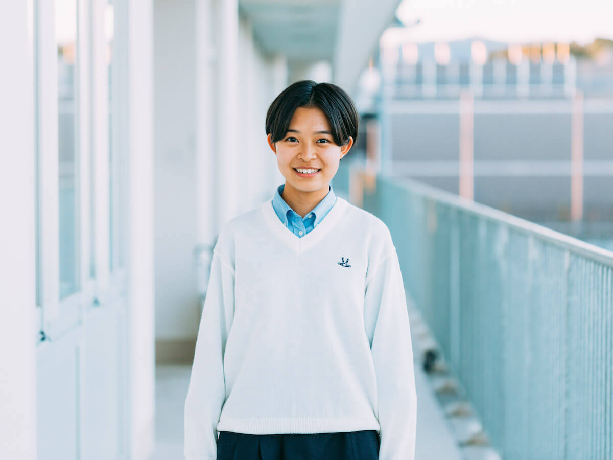 私は幼い頃からスポーツが大好き。小学校1年生からサッカーとゴルフを始めて、今もやっています。中学の時にはバスケ部と卓球部に所属。それに加えて、冬はスケートを習いに行ったり、家族でスキーに行ったり。夏は水泳もしてました。いま特に力を入れているのはサッカー。学校の部活には入らず、クラブチームに所属しています。中学校は系列校である追手門学院大手前中学に通っていたのですが、サッカーチームの練習場所が近いという理由もあって、ここへの進学を決めました。高校卒業後は、体育系の大学に進んで、将来的にはトレーナーなど、アスリートを支える仕事に就くのもいいなと思っています。