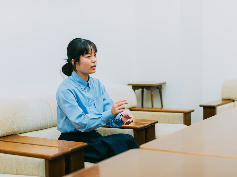 私がこの学校を受験しようと思った理由は、グループワークやクラスのみんなが一体となってひとつのことに取り組む機会が多いと聞いたから。というのも、私は昔から自分の協調性のなさを自覚していました。そんな自分を鍛えるために適した場所だと思ったんです。また熱しやすく冷めやすいのも、私の弱点のひとつ。たとえば日記を書き始めたとしても、1日目はものすごく長文なのに、2日目は日付だけ、みたいな(笑)。はじめの熱意が、なかなか持続しないんです。