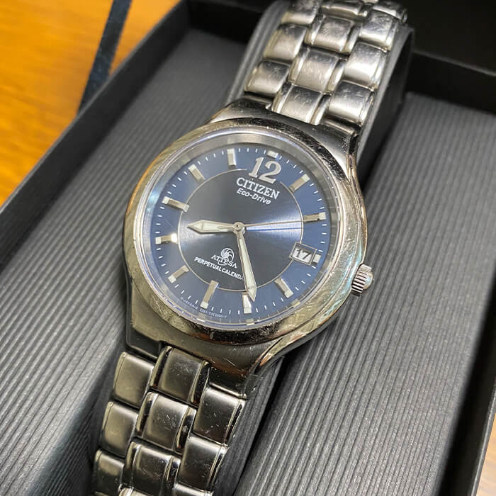 中学生の終わる頃に、両親が初めて買ってくれた腕時計。15年経っても肌身離さず愛用しており、楽しい時も辛い時もともに時間を共有してくれた。今は壊れて修理をしている…。