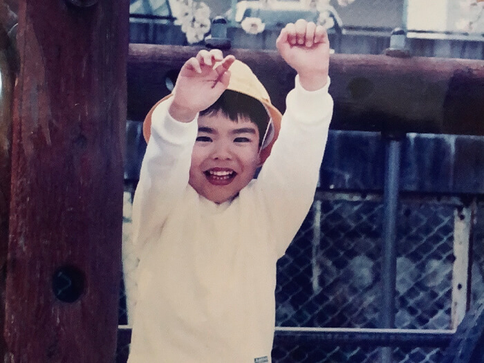 幼稚園の頃の写真。この頃から体を動かすことが好きだった。でも、後先考えずに行動していたので、よく𠮟られていたと思います。それ以降は物事をよく考えて行動するようになりました…。